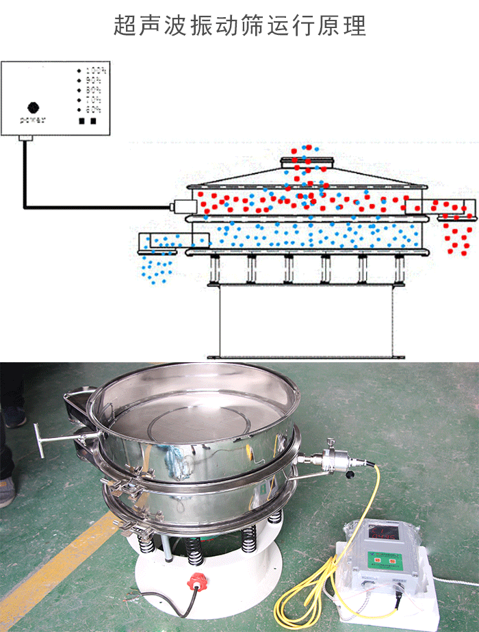 超聲波振動篩是將220v、50HZ或110v、60HZ電能轉(zhuǎn)化為38KHZ的高頻電能,輸入超聲換能器,將其變成38KHZ機械振動,從而達到高效篩分和清網(wǎng)的目的。超微細(xì)粉體接受巨大的超聲加速度,使篩面上的物料始終保持懸浮狀態(tài),從而抑制粘附、摩擦、平降、等堵網(wǎng)因素。解決了強吸附性、易團聚、高靜電、高精細(xì)、高密度、輕比重等篩分難題,使超細(xì)微粉篩分不再難事,特別適合高品質(zhì)、精細(xì)粉體的用戶使用 高頻振動篩采用筒體式偏心軸激振器及偏塊調(diào)節(jié)振幅,物料篩淌線長,篩分規(guī)格多,具有結(jié)構(gòu)可靠、激振力強、篩分效率高、振動噪音小、堅固耐用、維修方便、使用安全等特點。由于高頻振動篩采用了高頻率,一方面破壞了礦漿表面的張力和細(xì)粒物料在篩面上的高速振蕩,加速了大密度有用礦物和析離作用,增加了小于分離粒度物料與篩孔接觸的概率。