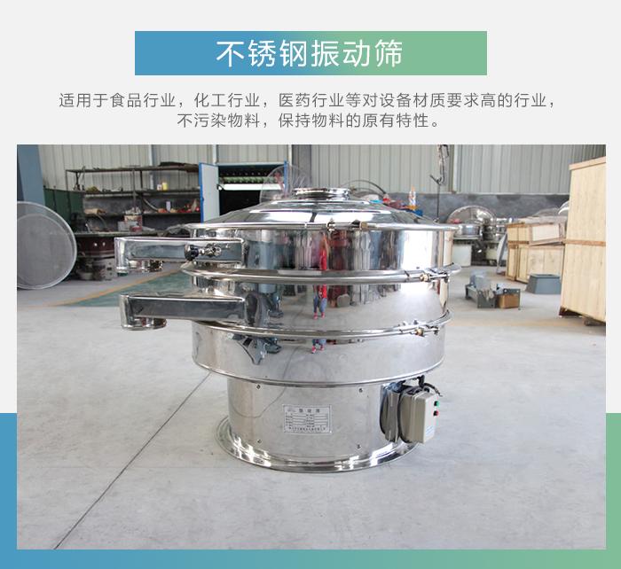 不銹鋼振動篩多適用于食品行業(yè),化工行業(yè),醫(yī)藥行業(yè)等對設(shè)備材質(zhì)要求高的行業(yè),不污染物料,保持物料的原有特性。不銹鋼振動篩里外拋光,干凈,衛(wèi)生,無死角。不銹鋼振動篩整機(jī)采用304材質(zhì),因此食品用振動篩也叫食品不銹鋼振動篩。