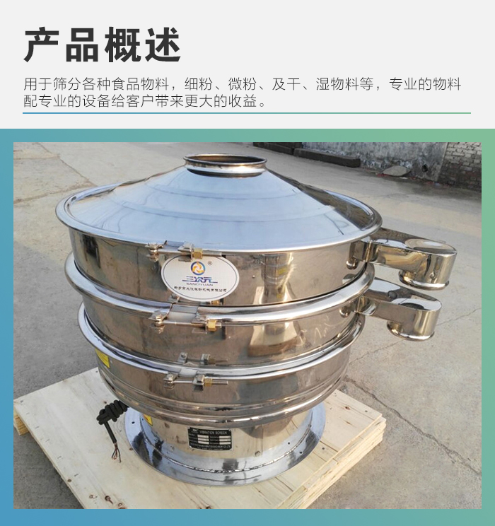 主要用于篩分各種食品物料,細(xì)粉、微粉、及干、濕物料等;很自然達(dá)到客戶要求,本產(chǎn)品精致實用,專業(yè)的物料配專業(yè)的設(shè)備會給客戶帶來更大的收益。