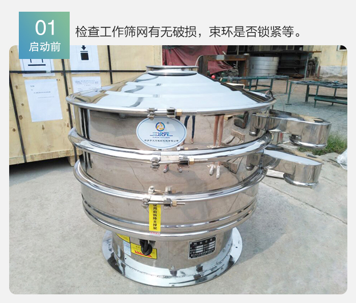 1、啟動前:(1)檢查工作篩網(wǎng)有無破損,如有破損,需立即更換完好的篩網(wǎng);